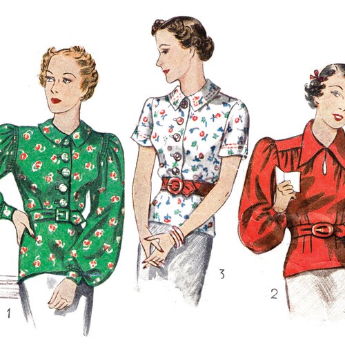 Vintage Sewing Pattern 1930s 30s Blouse Pattern Day Or Etsy